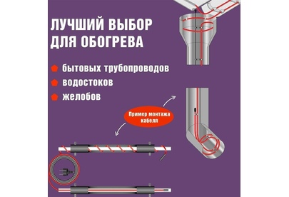 Комплекты саморегулирующегося кабеля MSR-PB REXANT предназначены для защиты от замерзания бытовых трубопроводов, счетчиков воды, вентилей и т. п. Нагревательный кабель соединен с питающим кабелем, на конце которого находится евровилка для подключения в розетку с заземлением. Нагревательный кабель является саморегулирующимся и в нормальных условиях его температура не превышает 60 °C. Комплекты подходят для использования как в помещениях, так и на улице. Кабель может быть смонтирован на поверхности как металлической, так и пластиковой трубы, под теплоизоляцией. Кабель может пересекаться сам с собой.