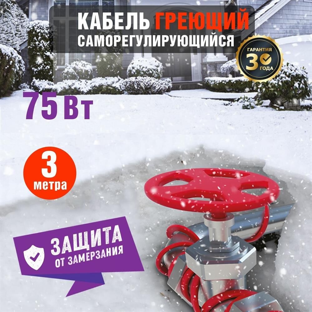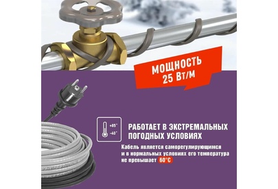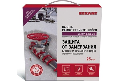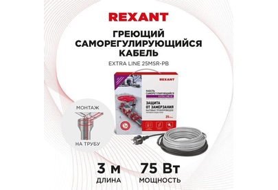REXANT Кабель греющий саморегулирующийся модель SRL Extra Line 25MSR-PB, на трубу, 3м/75Вт
