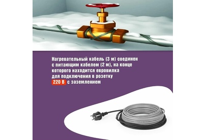 Комплекты саморегулирующегося кабеля MSR-PB REXANT предназначены для защиты от замерзания бытовых трубопроводов, счетчиков воды, вентилей и т. п. Нагревательный кабель соединен с питающим кабелем, на конце которого находится евровилка для подключения в розетку с заземлением. Нагревательный кабель является саморегулирующимся и в нормальных условиях его температура не превышает 60 °C. Комплекты подходят для использования как в помещениях, так и на улице. Кабель может быть смонтирован на поверхности как металлической, так и пластиковой трубы, под теплоизоляцией. Кабель может пересекаться сам с собой.