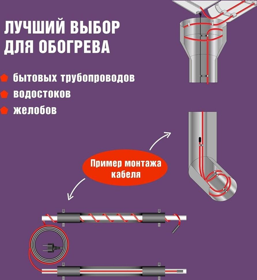 Запрещается устанавливать нагревательный кабель способами и в условиях, которые могут привести к механическому повреждению внешней оболочки, например, за счет сжатия, перетирания, растяжения, перехода через острые края. При установке на поверхности трубы витками