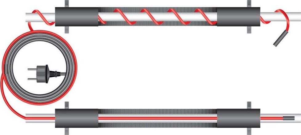 1. Монтаж кабеля на поверхности трубы, под теплоизоляцией. Фиксация кабеля обеспечивается алюминиевым скотчем или теплостойкой лентой.