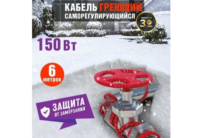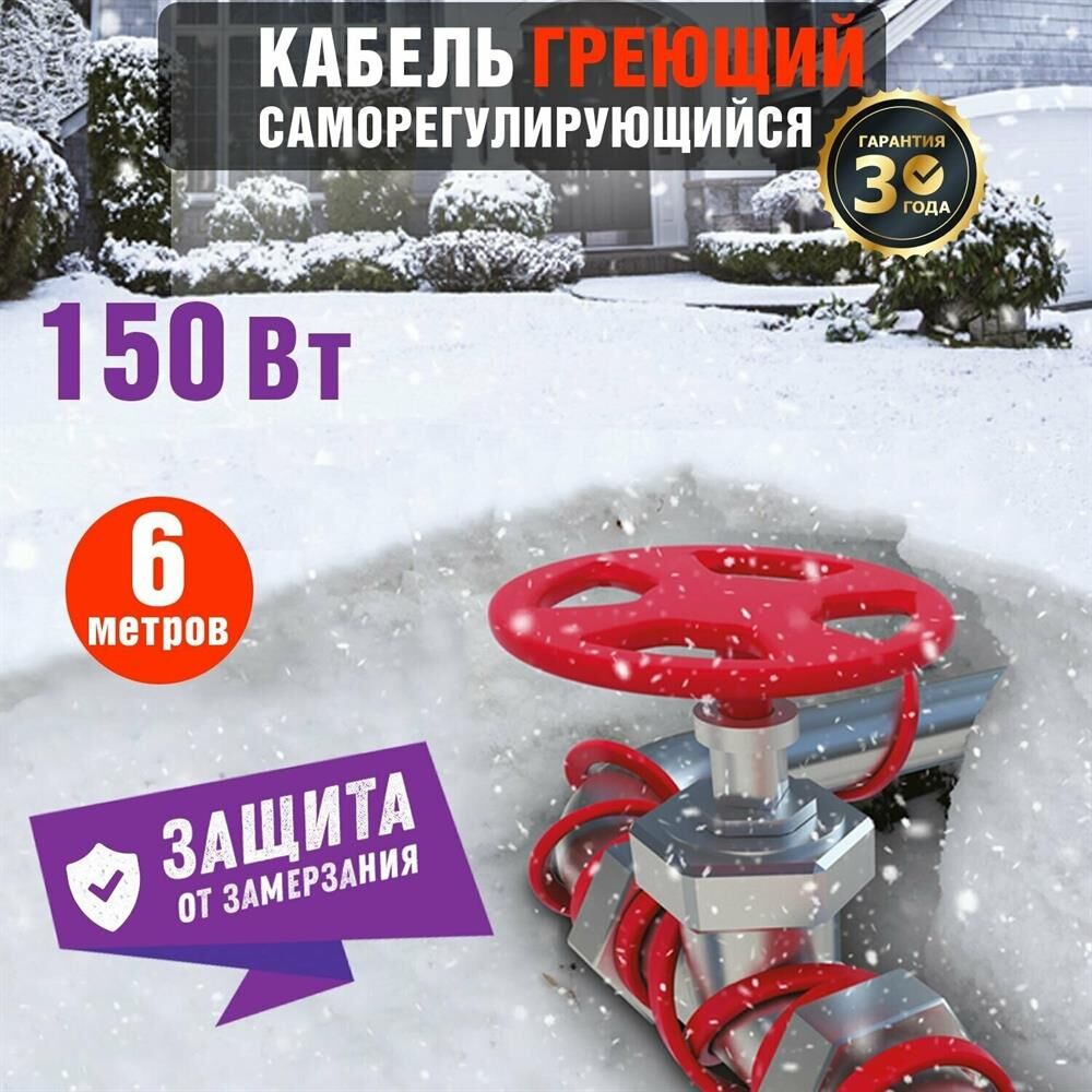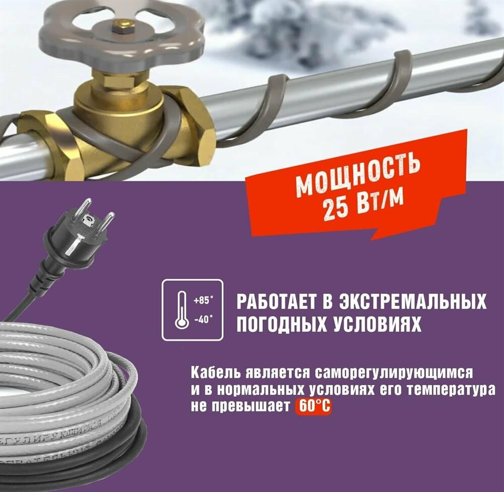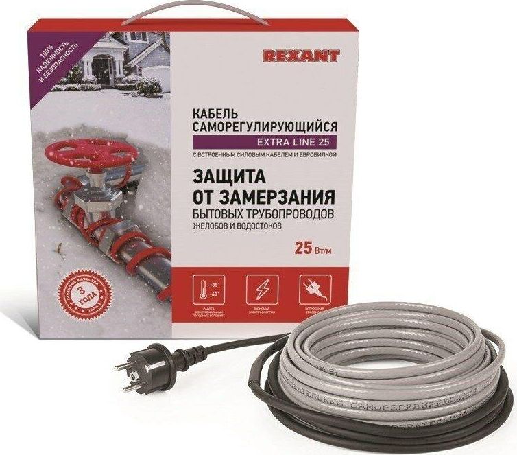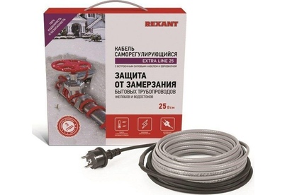 REXANT Кабель греющий саморегулирующийся модель SRL Extra Line 25MSR-PB, на трубу, 6м/150Вт