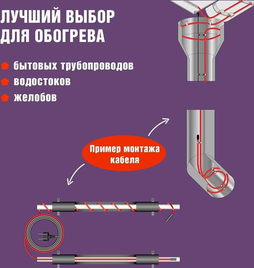 Запрещается устанавливать нагревательный кабель способами и в условиях, которые могут привести к механическому повреждению внешней оболочки, например, за счет сжатия, перетирания, растяжения, перехода через острые края. При установке на поверхности трубы витками