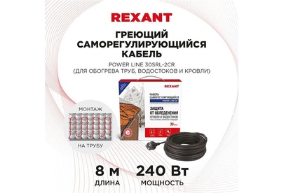 REXANT Кабель греющий саморегулирующийся модель SRL POWER Line 30SRL-2CR, 8м/240Вт