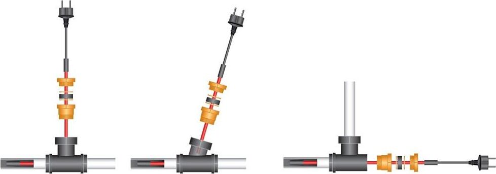 1. Установка кабеля во внутрь трубы с питьевой воды с помощью комплекта для ввода кабеля в трубу арт. 51-0610-1 или 51-0610-2.