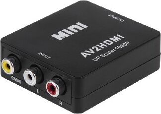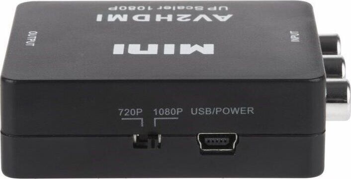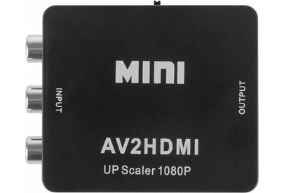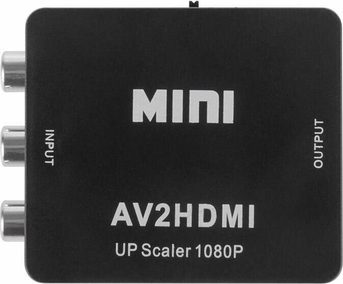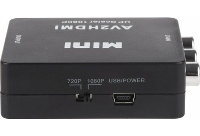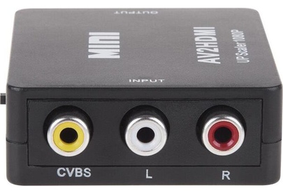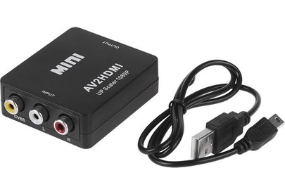 Активный конвертер 3 RCA на HDMI предназначен для перекодирования видео- и аудиосигналов разъемов типа RCA (тюльпаны, колокольчики) в видео- и аудиосигнал разъема HDMI с функцией масштабирования. Конвертер прост в установке и удобен в использовании. Изделие подключается к сети при помощи USB (поставляется в комплекте с изделием), имеет переключатель характеристик выходного сигнала: 720p60Hz или 1080p60Hz. Основные характеристики. Модель: MINI AV to HDMI; Входной интерфейс: CVBS L/R (RCA); Выходной интерфейс: HDMI; Источник питания: через USB кабель; Передача звука: есть (стерео); Переключатель PAL/NTSC: есть; Максимальное разрешение видео на аналоговом выходе: Full HD 1080р (1920х1080); Материал: пластик; Цвет: черный; Размеры: 66х55х20 мм; Вес: 40 гр. Комплектация: Конвертер HDMI to CVBS L/R, USB шнур.