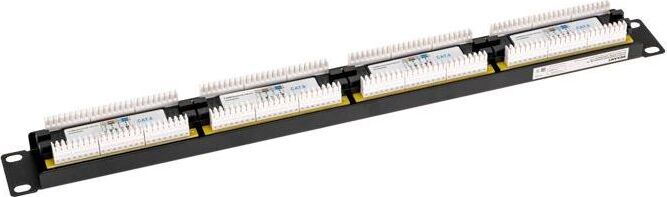 На передней стороне расположены 24 неэкранированных порта RJ-45 для кабелей категории 6. На тыльной стороне находятся IDC-разъемы, предназначенные для фиксированного соединения с кабелями. Все разъемы пронумерованы, предусмотрена цветовая и цифровая индикация.
