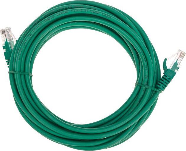 Патч-корд U/UTP зеленого цвета длиной 5 м предназначен для подключения активного и пассивного сетевого оборудования в составе структурированной кабельной системы. Относится к категории 5е: полоса пропускаемых частот – 100 МГц. Внешняя оболочка изготовлена из безгалогенного компаунда, который не распространяет горение, не дымится и не выделяет вредных веществ.