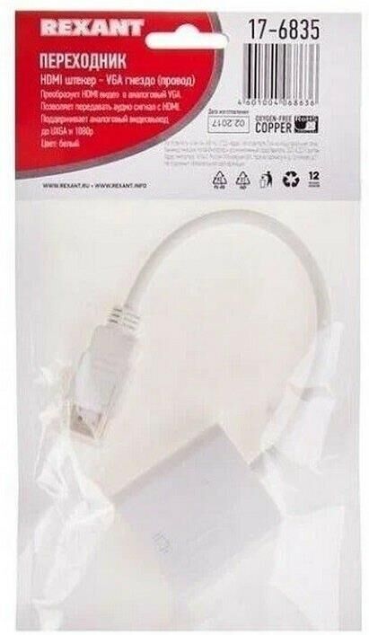 REXANT ПЕРЕХОДНИК ШТЕКЕР HDMI - ГНЕЗДО VGA, ПРОВОД 17-6835