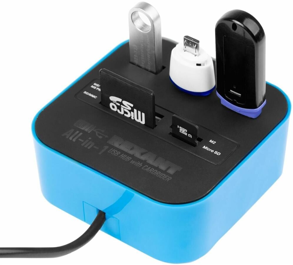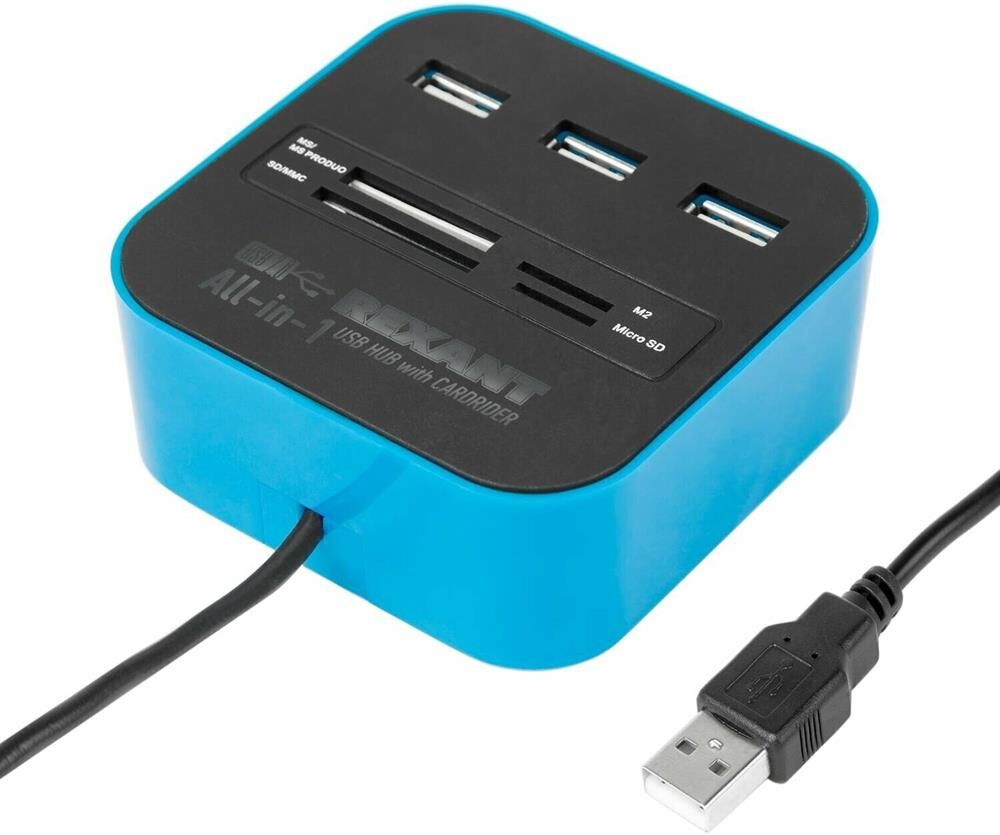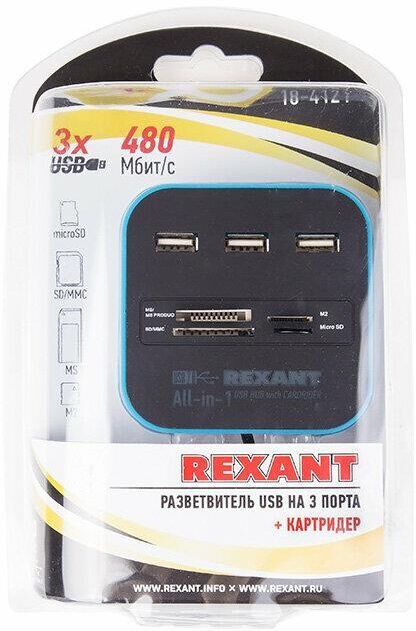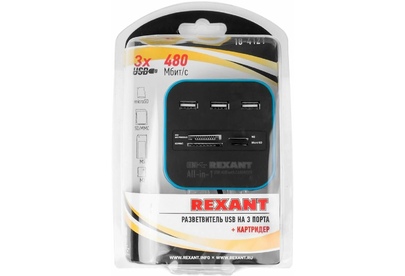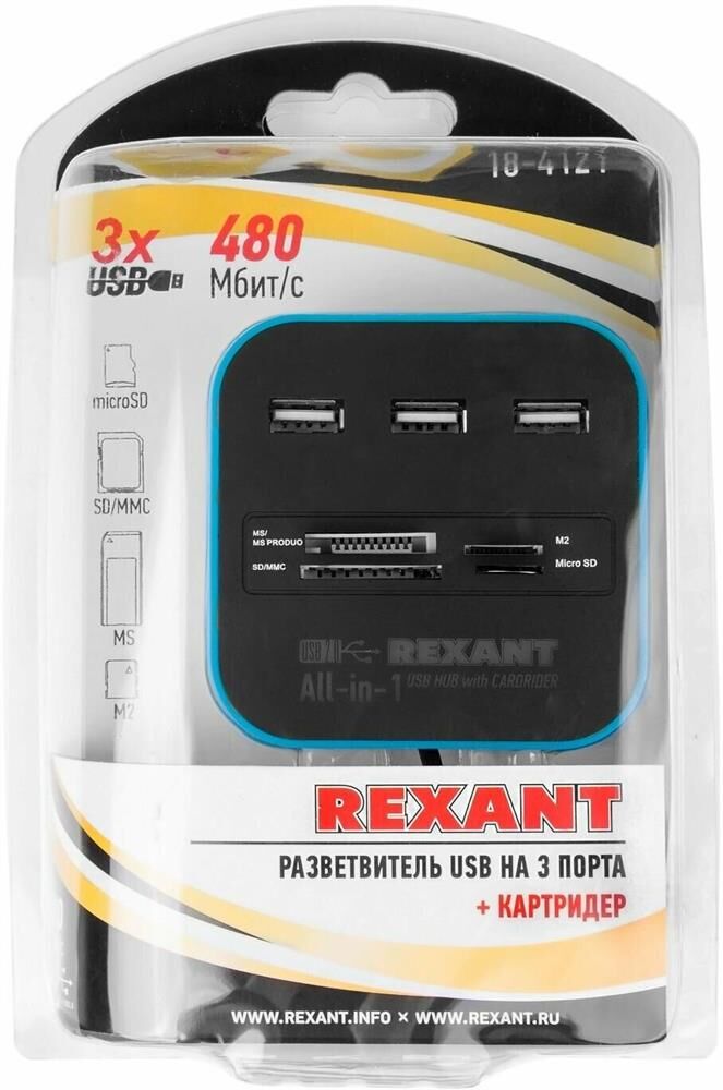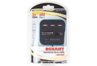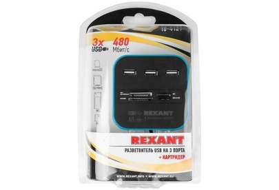 REXANT Разветвитель USB на 3 порта+картридер (все в одном) черный