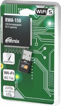 Миниатюрный USB адаптер с поддержкой WIFI5 для ПК или ноутбука позволит подключить его к сети WiFi на частоте 2.4ГГц и 5ГГц и создать высокоскоростное подключение до 600Мбит/с. Поддерживаются все версии Windows, не требуется установка драйверов.