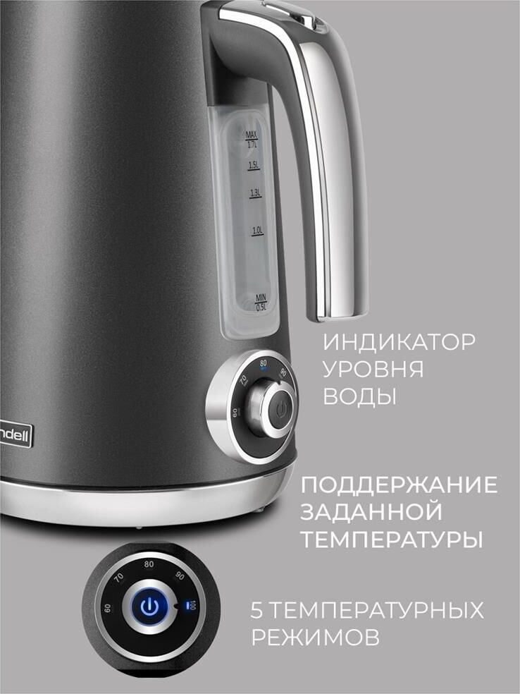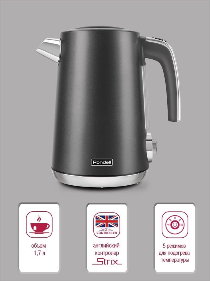 RONDELL Чайник электрический 1002-RE-01, 1.7л, металл