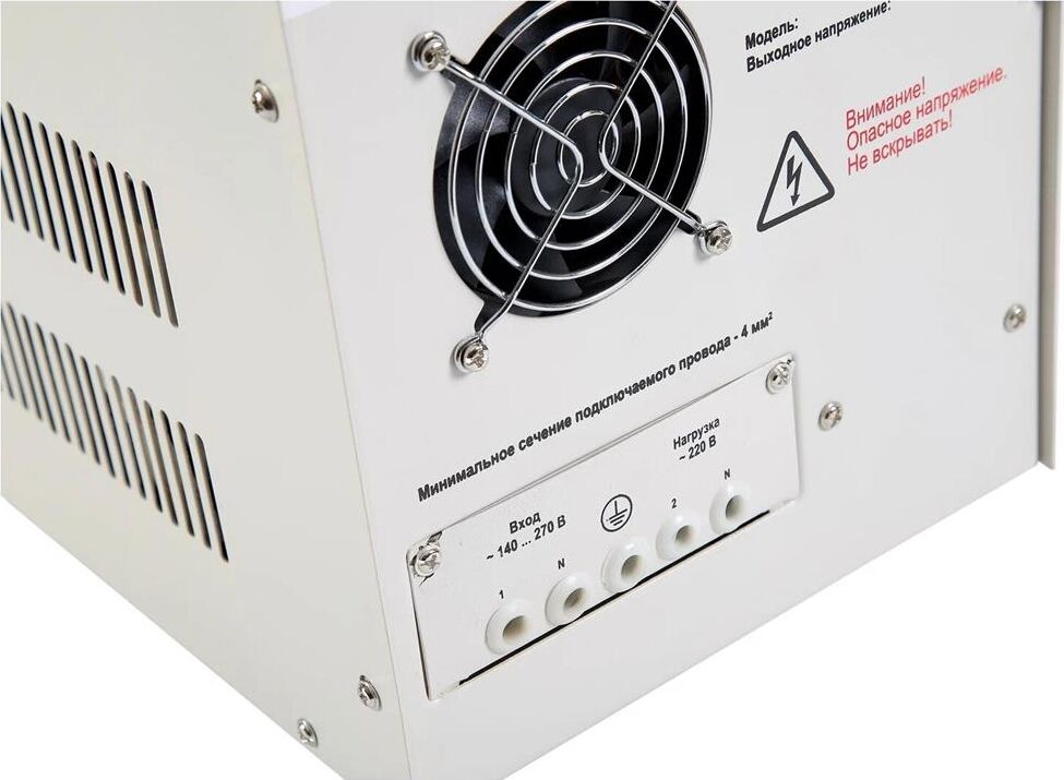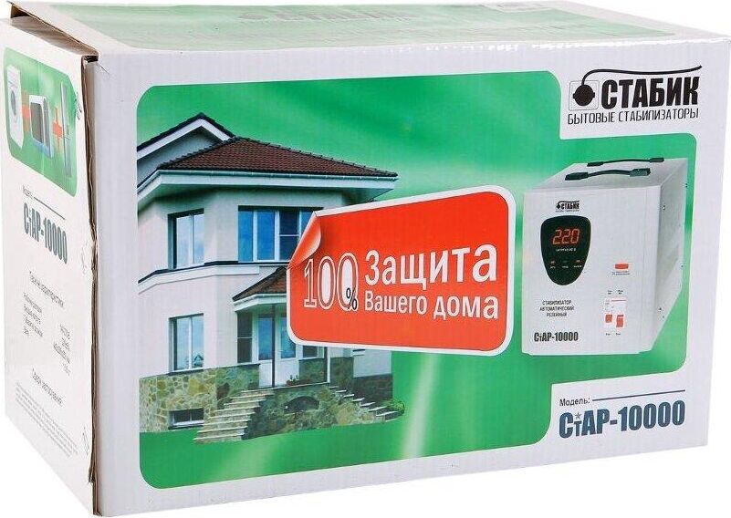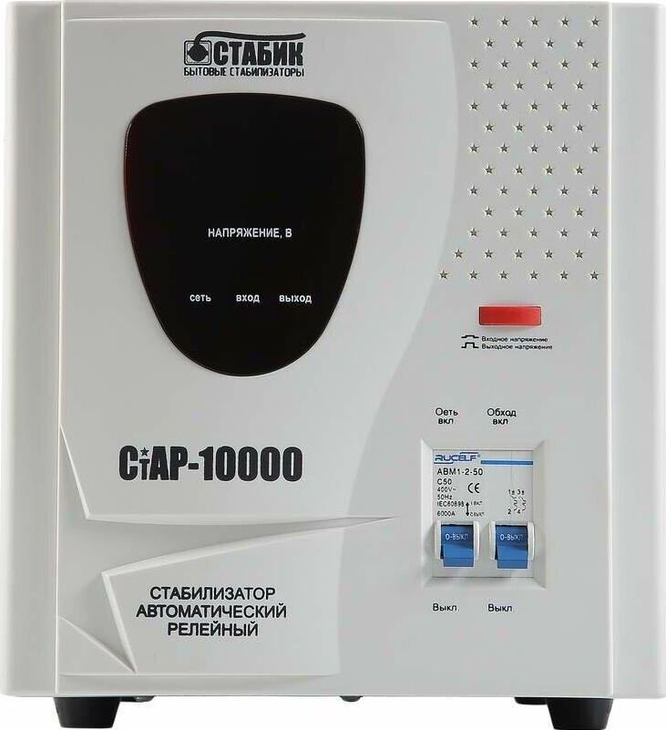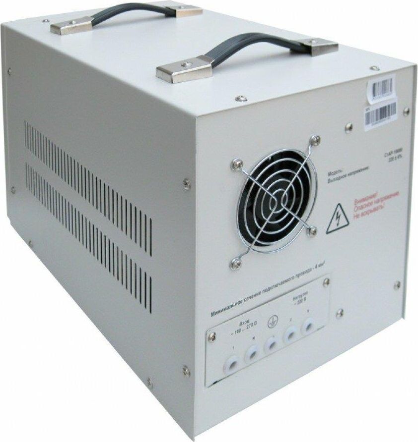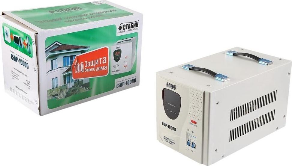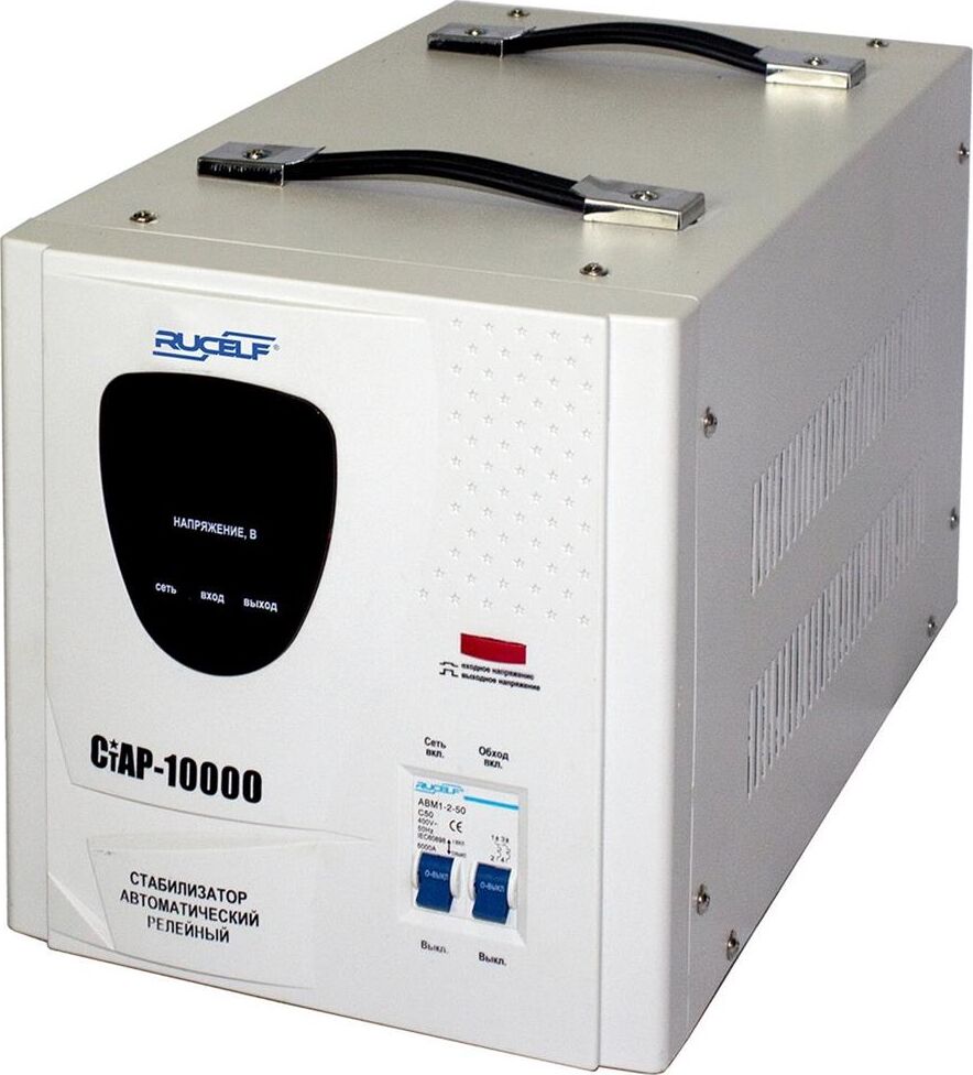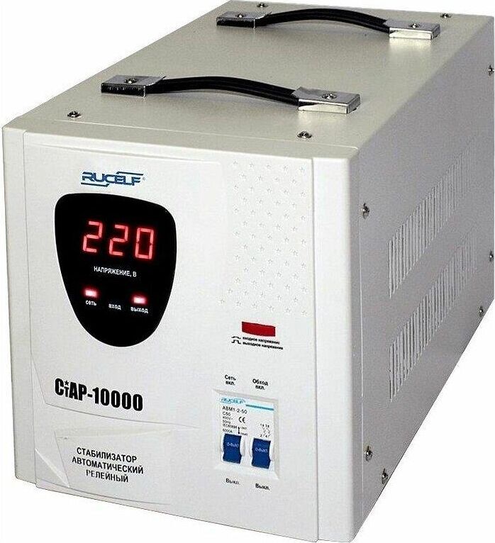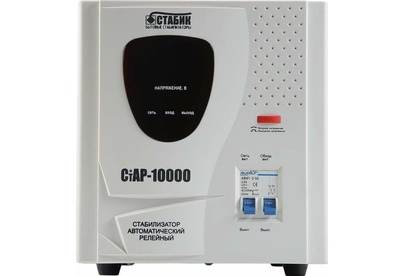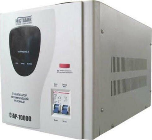Тип стабилизации: Релейный. Диапазон стабилизации: 140-260 В. Рабочий диапазон: 140-265 В. Точность стабилизации: ±6%. Мощность: 10000 ВА. Габаритные размеры: 460х270х300 мм. Вес: 15,2 кг.