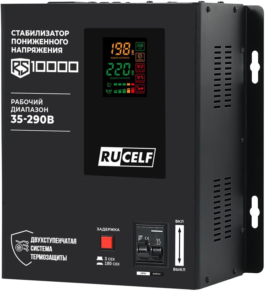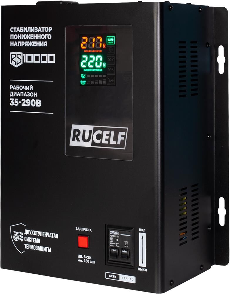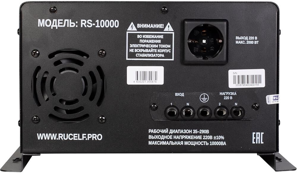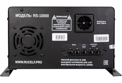 Тип стабилизации: релейный Мощность: 10000 ВА/8800 Вт Диапазон стабилизации: 45-280 В Рабочий диапазон: 35-290 В Выходное напряжение: 220 В±10% Частота: 50 Гц Размеры изделия (ШхВхГ): 400х190х330 мм Габаритные размеры (ШхВхГ): 460х245х370 мм Вес нетто/брутто: 19,6/20,75 кг