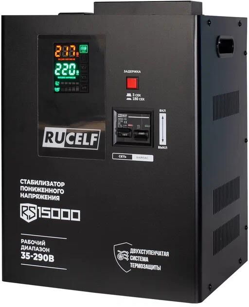 Тип стабилизации: релейный Мощность: 15000 ВА/13200 Вт Диапазон стабилизации: 45-280 В Рабочий диапазон: 35-290 В Выходное напряжение: 220 В±10% Частота: 50 Гц Размеры изделия: 335х290х457 мм Габаритные размеры: 355х400х505 мм Вес нетто/брутто: 27,4/31,4 кг