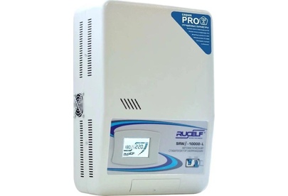 "Тип стабилизации: Релейный Диапазон стабилизации: 110-270 В Рабочий диапазон: 95-280 В Точность стабилизации: ±8% Мощность: 10000 ВА Стабилизатор напряжения SRW II-10000 предназначен для автоматической регулировки напряжения. Использует ступенчатые тип регулировки и имеет индикацию всех важных параметров на жидкокристаллическом дисплее. Стабилизатор напряжения SRW II-10000 — инновационный продукт в линейке надежных стабилизаторов RUCELF. Микропроцессор нового уровня в сочетании с шестью скоростными реле позволяют прибору мгновенно реагировать на изменение входного напряжения. Имеет повышенную степень защиты и высокую точность стабилизации. Современный дизайн и компактные размеры — неоспоримое преимущество при размещении стабилизатора в любом интерьере."