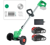 Диаметр резки: 150 мм. Время зарядки аккумулятора: 120 мин. Время работы без нагрузки, мин: 60-80 мин. Мощность: 650 Вт. Скорость холостого хода: 10000 об/мин. Резьба шпинделя: 4М. Комплектация*: Триммер - 1 шт. Защитный кожух - 1 шт. Дополнительная рукоятка - 1 шт. Винт - 1 шт. Крышка винта - 1 шт. Гайки - 6 шт (входят в комплект). Металлический нож - 2 шт. Пластиковый нож - 5 шт. Аккумулятор - 2 шт. Зарядное устройство - 1 шт. Пильный диск - 1 шт. Гаечный ключ - 1 шт . Комплект колес - 1 шт (2 колеса). Леска в пакетах - 20 шт. Катушка - 1 шт. Руководство по эксплуатации - 1 шт. *Поставляется в частично разобранном виде.