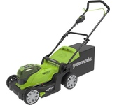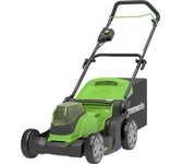 Аккумуляторная газонокосилка Greenworks G24X2LM41 линейки 24V является первой моделью, имеющей батарееприемник для синхронной работы двух АКБ, в линейке аккумуляторных 24-вольтовых газонокосилок Greenworks. Данная особенность позволяет увеличить объем выполняемой работы. Ширина скашивания у этой косилки 41 см. Травосборник имеет объем 50 литров и выполнен в металлическом каркасе. Аккумуляторная газонокосилка Greenworks G24X2LM41 — удобная и маневренная газонокосилка с малым весом и низким уровнем шума. Для надежности корпус газонокосилки выполнен из специального “мягкого” пластика, при попадание в который небольших камней он не трескается. У газонокосилки есть регулировка высоты скашивания на 6 уровнях (25 - 80 мм) с приводом на все колеса. Двигатель щеточный, 3600 оборотов в минуту. Важной особенностью этой газонокосилки является система защиты двигателя от механических повреждений, например при наезде на твердый предмет. Для защиты от случайного включения, предусмотрен специальный ключ безопасности и кнопка