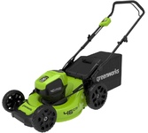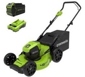 Тип двигателя: электрический. Режущая система: 0. Ширина скашивания: 46. Тип выброса травы: задний выброс в травосборник, боковой выброс. Тип травосборника: мягкий. Объем травосборника: 55. Мульчирование: есть. Ручки для транспортировки: есть. Складная ручка: есть. Регулировка ручки по высоте: есть. Количество колес: четырехколесная. Защита от перегрузки: нет. Тип электропитания: от аккумулятора. Емкость аккумулятора: 4. Напряжение аккумулятора: 40. Вес товара: 24.5. Тип передвижения: несамоходное. Рекомендуемая площадь скашивания: 800. Аккумулятор в комплекте: есть. Зарядное устройство в комплекте: есть. Габариты упаковки (ед) ДхШхВ: 0.83x0.56x0.431. Вес упаковки (ед): 16.8. Гарантия: 24 мес.. Высота скашивания: 25 - 80 мм. Регулировка высоты скашивания: есть, (центральная). Ширина скашивания: 46 см. Объем травосборника: 55 л. Аккумулятор: 4 Ач, 40 В. Вес: 24.5 кг. Режущая система: 0. Выброс травы: задний выброс в травосборник, боковой выброс. Двигатель: электрический