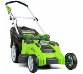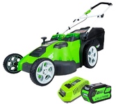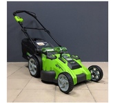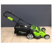 Тип двигателя: электрический. Режущая система: нож. Ширина скашивания: 46. Система регулировки высоты скашивания: 7 уровней, центральная. Тип выброса травы: боковой выброс, в травосборник. Тип травосборника: мягкий. Объем травосборника: 55. Количество колес: четырехколесная. Материал колес: пластик. Тип электропитания: от аккумулятора. Емкость аккумулятора: 5. Напряжение аккумулятора: 40. Вес товара: 28. Комплект поставки: 40V аккумуляторная газонокосилка Greenworks артикул 2506807; Аккумулятор Greenworks 40V, 5 Ач; Зарядное устройство Greenworks 40V, 2 Ач; Заглушка для мульчирования; Травосборник; Руководство по эксплуатации; Гарантийный талон.. Особенности: Слот на два аккумулятора – основной и запасной.. Тип передвижения: самоходное. Аккумулятор в комплекте: есть. Зарядное устройство в комплекте: есть. Габариты упаковки (ед) ДхШхВ: 0.705x0.48x0.34. Вес упаковки (ед): 15.5. Количество аккумуляторов в комплекте: 1. Гарантия: 24 мес.. Высота скашивания: 25 - 80 мм. Особенности устройства: мульчирование, регул