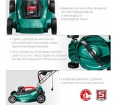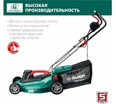 Тип двигателя: электрический. Ширина скашивания: 37. Тип травосборника: мягкий с жестким верхом. Объем травосборника: 35. Мульчирование: есть. Складная ручка: есть. Регулировка ручки по высоте: есть. Количество колес: четырехколесная. Напряжение аккумулятора: 18. Аккумулятор в комплекте: нет. Зарядное устройство в комплекте: нет. Габариты упаковки (ед) ДхШхВ: 0.71x0.48x0.35. Вес упаковки (ед): 32.3. Гарантия: 24 мес.. Высота скашивания: 25 - 75 мм. Регулировка высоты скашивания: есть, (6 уровней). Двигатель: электрический. Объем травосборника: 35 л. Ширина скашивания: 37 см. Аккумулятор: 18 В