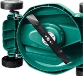 Ширина скашивания, см 38 Высота скашивания, мм 25-75 Количество режимов регулировки высоты 6 Объем травосборника, л 30 Рекомендуемая площадь обработки, м² 400 Тип двигателя щеточный Макс. частота вращения ножей, об/мин 3000 Напряжение аккумулятора, В 40 (2*21) Емкость аккумулятора, А*ч 4,0 Тип аккумулятора Li-ion Аккумулятор и ЗУ в комплекте нет Выброс травы травосборник/мульчирование Заглушка для мульчирования есть Самоходная (привод на колесах) нет Регулировка высоты скашивания центральная Материал травосборника пластик/ткань Материал деки пластик Диаметр колес (передние/задние), мм 160/200 Конструкция колесной пары без подшипников Регулировка скорости нет Индикатор наполнения травосборника есть Штуцер для промывки деки нет Панель с подставкой под стакан нет Ручка для транспортировки есть Складная рукоятка есть Уровень шума при работе, дБ 92