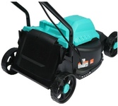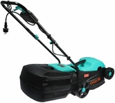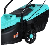 Тип двигателя: электрический. Мощность двигателя: 1400. Режущая система: нож. Ширина скашивания: 32. Система регулировки высоты скашивания: 3 уровня. Тип выброса травы: задний выброс. Тип травосборника: жесткий. Количество колес: четырехколесная. Вес товара: 8.2. Комплект поставки: Газонокосилка, травосборник, рукоятка с набором крепежа, фиксаторы силового кабеля, инструкция по эксплуатации.. Тип передвижения: несамоходное. Габариты упаковки (ед) ДхШхВ: 0.575x0.385x0.29. Вес упаковки (ед): 9. Гарантия: 14 мес.. Высота скашивания: 30 - 70 мм. Размеры: 110 х 36.5 х 94.5 см. Особенности устройства: защита от перегрузок, регулировка высоты скашивания. Двигатель: электрический, 1400 Вт. Выброс травы: задний выброс. Вес: 8.2 кг. Режущая система: нож. Ширина скашивания: 32 см