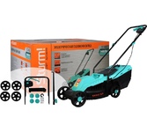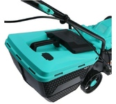 Тип двигателя: электрический. Мощность двигателя: 1250. Режущая система: нож. Система регулировки высоты скашивания: 3 уровня, осевая. Тип травосборника: жесткий. Объем травосборника: 35. Количество колес: четырехколесная. Материал колес: пластик. Тип электропитания: от электросети. Тип передвижения: несамоходное. Габариты упаковки (ед) ДхШхВ: 0.57x0.395x0.31. Вес упаковки (ед): 9.4. Гарантия: 12 мес.. Объем травосборника: 35 л. Режущая система: нож. Двигатель: электрический, 1250 Вт