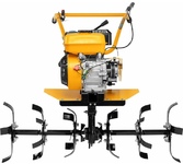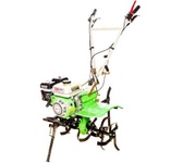 Тип: Мотоблок. Тип двигателя: бензиновый. Объем двигателя: 212. Ширина обработки: 850. Глубина обработки: 350. Запуск двигателя: ручной стартер. Коробка передач: механическая. Привод (редуктор): Шестеренчато-цепной. Сцепление: ременное. Объем топливного бака: 6. Тип топлива: АИ-92. Охлаждение двигателя: воздушное, принудительное. Комплект поставки: Мотоблок, универсальное сцепное устройство, кенгурятник, фрезы.. Вес: 84. Особенности: Усиленная рама, увеличенный до 6 л. объем топливного бака, универсальное сцепное устройство, фрезы в комплекте, размер колесных шин 19-7.00х8, кронштейн сошника выполнен путем гибки из цельного стального листа при полном отсутствии сварных швов, что повышает его прочность и устойчивость к коррозии.. Тип бензинового двигателя: 4-х тактный. Количество цилиндров: одноцилиндровый. Модель двигателя: EX210/6. Максимальная частота вращения вала: 3600. Объем масла двигателя: 0.6. Рекомендуемая марка масла двигателя: SAE10W30. Объем масла редуктора: 1.2. Рекомендуемая марка масла редуктор