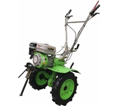Мощность 9 л.с., объем двигателя 270 см3, 3600 об/мин,топливный бак 6,5 л, масляный бак 1,1 л,дисковое сцепление, передачи: 2+1, пневматические колеса 5*12, фрезы ø30 см, 32 фрезы, ширина вспашки 1100 мм, Глубина вспашки 300 мм, универсальное крепление навесного оборудования, 125 кг.