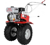 ехнические характеристики: • Ширина обработки: 85 см • Глубина обработки: до 160/300 мм • Количество передач: 2 вперед/1 назад • Редуктор: алюминиевый цепной • Мощность двигателя: 7 л.с. • Объем двигателя: 208 см. куб • Объем топливного бака: 3,6 л • Объем масляного картера: 0,6 л • Объем картера редуктора: 1,2 л • Пневматические колеса: 4.00-8 • Фрезы: 6 групп по 4 ножа • Механизм сцепления: клиноременное, путем нажатия ремня роликом • Система запуска: ручной стартер • Тип двигателя: 4-х тактный бензиновый • Тип топлива: бензин АИ-92 • Двигатель: 170FC • Свеча зажигания: F7TC • Приводной ремень: 17-950Li • Подключение активной навески: шкив • Гарантия: 2 года • ВхШхГ упаковки: 65х84х47 см • Вес брутто упаковки: 69,6 кг • Объем упаковки: 0,267665 куб. м • Комплект поставки: мотоблок, колесо пневматическое: 2 шт., комплект фрез, сошник, держатель сошника, крыло левое, крыло правое, держатель крыльев задний: 2 шт., адаптер передний, инструкция