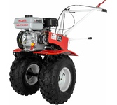 Технические характеристики: • Ширина обработки: 85 см • Глубина обработки: до 160/300 мм • Количество передач: 2 вперед/1 назад • Редуктор: чугунный цепной • Мощность двигателя: 7 л. с. • Объем двигателя: 208 см. куб • Объем топливного бака: 3,6 л • Объем масляного картера: 0,6 л • Объем картера редуктора:1,2 л • Пневматические колеса: 4.00-10 • Фрезы: 6 групп по 4 ножа • Механизм сцепления: клиноременное, путем нажатия ремня роликом • Система запуска: ручной стартер • Тип двигателя: 4-х тактный бензиновый • Тип топлива: бензин АИ-92 • Двигатель: 170FC • Свеча зажигания: F7TC • Приводной ремень: 17-950Li • Подключение активной навески: шкив
