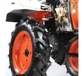 Ширина обработки, см 135. Пневматические колеса 5,0-12. Количество передач 2 вперед/1 назад. Механизм сцепления дисковое в масляной ванне. Подключение активной навески BOM. Мощность двигателя, л.с. 9. Шестерёнчатый редуктор способен выдержать самые продолжительные нагрузки.