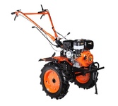 Сельскохозяйственная машина Huter МК-11000PE используется для обработки почвы - рыхления, боронования, выравнивания, прополки и других работ на приусадебных, огородных и садовых участках. Агрегат имеет бензиновый двигатель мощностью 11 лошадиных сил и три передачи, две вперед и одну назад. Для удобства оператора все переключатели находятся на ручках агрегата, а резиновые накладки обеспечивают удобное удержание. Металлический щиток предотвращает попадание грунта на оператора и двигатель. Ширина обработки 115 сантиметров вместе с топливным баком в 6 литров позволяют обрабатывать большие территории без дозаправки. Технические характеристики: Мощность двигателя: 11 л.с. Тип двигателя: бензиновый Число тактов: 4 Тип топлива: бензин АИ-92 Способ охлаждения: воздушный Мощность: 8,09