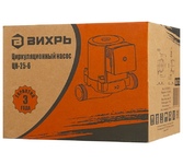 Циркуляционный насос Вихрь Ц-25-6. Мощность, Вт – 40/60/90; Напор, м – 3/5/6; Максимальный поток, л/мин – 50; Резьба на насосе, дюйм – 1,5;