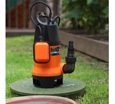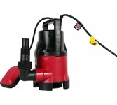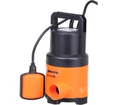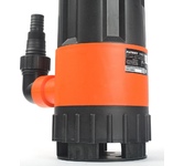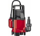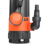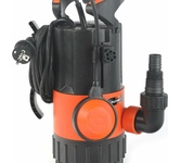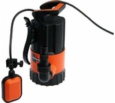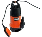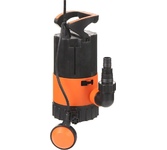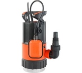 Насос дренажный для грязной воды, мощность 880 Вт, максимальный напор 8 метров, максимальный расход 250 л/мин, максимальный размер пропускаемых частиц 35 мм, максимальная глубина погружения 8 метров, материал корпуса пластик, встроенный поплавок