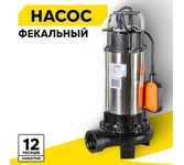 Насос фекальный с режущим механизмом, мощность 1800 Вт, максимальный напор 12 метров, максимальный расход 350 л/мин, максимальный размер пропускаемых частиц 50 мм, максимальная глубина погружения 8 метров, материал корпуса чугун, материал крыльчатки чугун