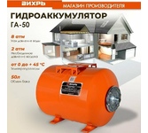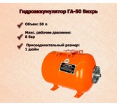 Гидроаккумулятор (бак) ВИХРЬ ГА-50. Объем бака, л – 50; Макс. давление, атм – 8; Тип расположения – горизонтальное;
