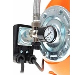 800Вт, 220В, 50 Гц макс. глубина всасывания 9 м, макс.подача 60 л/мин, объём бака 24 л, давление 3,6 атм, высота подъема 40 м, емкость гидроаккумулятора 50 л