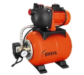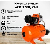 Насосная станция ВИХРЬ АСВ-1200/24Ч. Мощность, Вт – 1200; Емкость гидроаккумулятора, л – 24; Максимальный напор, м - 45; Максимальная подача, л/мин – 70; Материал корпуса насоса – чугун;