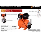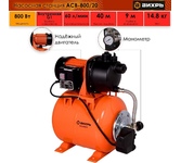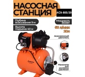 800Вт, 220В, 50 Гц макс. глубина всасывания 9 м, макс.подача 60 л/мин, объём бака 19 л, давление 1.5 атм, высота подъема 40 м