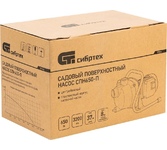 Садовый поверхностный насос СИБРТЕХ СПН650-П 97244 используется для орошения дачных участков. Забор воды возможен из колодцев, водоемов и резервуаров. Корпус из пластика. Малый вес конструкции - повышенная мобильность. Двигатель мощностью 650 Вт способствует подъему воды с глубины 8 метров. Высота подъема: 37 м. Мощность: 650 Вт. Производительность: 53,3 л/мин. Трубное соединение: внутренняя G1 дюйм. Вид: поверхностный. Вес нетто: 6 кг. Конструкция: центробежный.