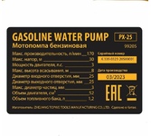 Номинальная мощность 1200 W. Расположение двигателя Горизонтальный. Двигатель 1E40F-6. Максимальная высота подъёма 30 m. Максимальная глубина всасывания 8 m. Способ запуска ручной стартер. Производительность (по всасыванию) 7 m3/h. Количество цилиндров/ Число тактов 1/2. Диаметр входного/ выходного патрубка 25,4 mm. Зажигание CDI (электронное). Ёмкость топливного бачка 0,95 l. Топливо Смесь бензина АИ - 92 ( неэтилированного) с маслом для 2-х тактных двигателей. Тип свечи зажигания для 2-х тактных двигателей. Масса 8 кг.