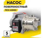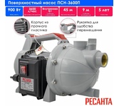 Поверхностный насос Ресанта ПСН-4200Н - это высококачественный продукт от известного бренда Ресанта, который зарекомендовал себя на рынке как производитель надежной и долговечной техники. Насос оснащен асинхронным однофазным двигателем с короткозамкнутым ротором, что обеспечивает его высокую производительность и надежность. Максимальная подача составляет 4200 литров в час, а максимальная высота подъема - 50 метров.