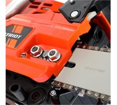 Бензопила Hanskonner HGC1618. Маневренная, износостойкая модель с быстрым разгоном отличается удобством в эксплуатации и подходит для выполнения работ в стесненных условиях. Бензопила оптимально подходит для выполнения внутрихозяйственных работ и удобна для ухода за деревьями. Верхнее расположение основной ручки позволяет оператору легко управлять бензопилой даже находясь на высоте. Эргономичное расположение рукояток относительно центра тяжести делает инструмент удобным и хорошо сбалансированными, что позволяет комфортно контролировать его в любых ситуациях. Безопасность работы обеспечивается предохранительной клавишей, предотвращающей случайное нажатие газа, ограничителем цепи, защитным щитком для правой руки, а также цепным тормозом, активируемым принудительно либо силой инерции. Два способа активации тормоза цепи повышают безопасность труда. Двигатель с хонингованной, покрытой твёрдым хромом поршневой группой, прекрасно сбалансирован, стабильно работает без потери мощности при изменении положения инструмен