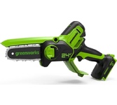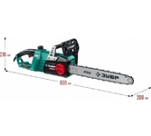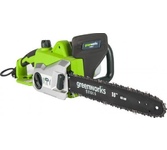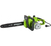 Цепная электрическая пила GreenWorks модель GCS1840 из серии устройств 230V - отлично подойдет для заготовки дров, пиления деревьев, веток и сучьев на приусадебном участке. Эта пила оснащена мощным электрическим двигателем с потреблением 1800 Вт. Шина из кремнистой стали длиною 40 см и цепь производства компании Oregon. Смазка шины и цепи происходит автоматически, а масляный бачок на 200 мл имеет прозрачные стенки для индикации уровня масла. Для безопасности пила оснащена тормозом цепи и предохранителем от случайного включения. Для удобства хранения пила имеет проушину для крепления на стену. Пила оснащена бесключевым механизмом монтажа/демонтажа/натяжения цепи и прорезиненной ручкой. Важным фактором является небольшой вес пилы - всего 4,8 кг., а также длительный гарантийный срок, в отличии от многих производителей - 2 года. Преимущества модели: Малый вес 4,8 кг.; Шина и цепь производства Oregon; Монтаж - демонтаж - натяжение цепи без инструментов; Прорезиненная рукоятка.