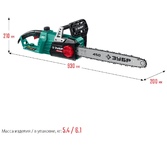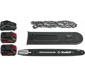 Длина направляющей шины, мм/in 355/14. Номинальное напряжение, В 40 (20+20). Объем масляного картера, мл 220. Рекомендуемая емкость аккумуляторов, А/ч 4.0. Скорость цепи, м/с 15. Шаг цепи, дюйм 3/8. Тип двигателя Бесщёточный.