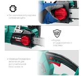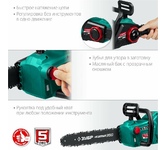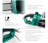 Тип: Цепная пила. Длина пильной шины: 12" (30 см). Скорость движения цепи: 4.2. Электропитание: от аккумулятора. Тип аккумулятора: Li-Ion. Напряжение аккумулятора: 40. Натяжение цепи: без использования инструментов. Бак смазки цепи, объем: 0.2. Тип двигателя: электрический. Шаг цепи: 3/8". Количество звеньев цепи: 45. Ширина паза цепи: 1.1 мм. Комплектация: Цепная пила, инструкция, упаковка. . Аккумулятор в комплекте: отсутствует. Зарядное устройство в комплекте: отсутствует. Габариты упаковки (ед) ДхШхВ: 0.35x0.18x0.25. Вес упаковки (ед): 3.48. Плавный пуск: есть. Страна производитель: Китай. Тормоз цепи: есть. Гарантия: 12 мес.. Двигатель: электрический. Аккумулятор: Li-Ion, 40 В. Цепь: шаг 3/8", ширина паза 1.1 мм, количество звеньев 45. Длина шины: 12" (30 см)
