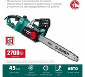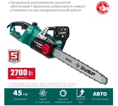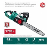 Ставр ПЦЭ-45/2800БК Пила цепная ЭЛЕКТРИЧЕСКАЯ, 2800 Вт, шина 45см, поперечное расположение мотора, 4200об/мин, скорость движения цепи 7 м/с, цепь 18" 3/8" 0,050" 63 звена, тормоз цепи, система бесключевого натяжения цепи, автоматическая смазка цепи, плавный пуск, коробка