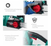 Тип: Цепная пила. Длина пильной шины: 10" (25 см). Скорость движения цепи: 4.2. Электропитание: от аккумулятора. Тип аккумулятора: Li-Ion. Напряжение аккумулятора: 24. Автоматическая смазка цепи: есть. Натяжение цепи: без использования инструментов. Вес товара: 2.59. Бак смазки цепи, объем: 0.2. Тип двигателя: электрический. Особенности: Кнопка- предохранитель от случайного старта, щиток для защиты рук.. Шаг цепи: 3/8". Количество звеньев цепи: 40. Ширина паза цепи: 1.1 мм. Уровень звукового давления (Lpa): 80.4. Уровень звуковой мощности (Lwa): 97. Уровень вибрации на передней рукоятке: 1.5. Уровень вибрации на задней рукоятке: 1.5. Комплектация: Аккумуляторная цепная пила 25 см арт. 2007707; руководство по эксплуатации; гарантийный талон. Внимание: этот комплект поставляется без аккумулятора (АКБ) и зарядного устройства (ЗУ).. Аккумулятор в комплекте: отсутствует. Зарядное устройство в комплекте: есть. Габариты упаковки (ед) ДхШхВ: 0.35x0.181x0.26. Вес упаковки (ед): 3.47. Гарантия: 12 мес.. Двигатель: элек